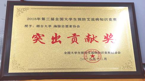 2018年12月31日,中国预防性病艾滋病基金会对在“第三届全国老员工预防艾滋病知识竞赛”中做出突出贡献的组织颁发了奖项。协办本次活动的williamhill威廉希尔官网志愿服务组织——海豚志愿者协会荣获“突出贡献奖”和“优秀组织单位”奖项,协会指导老师获得“优秀指导老师”称号。